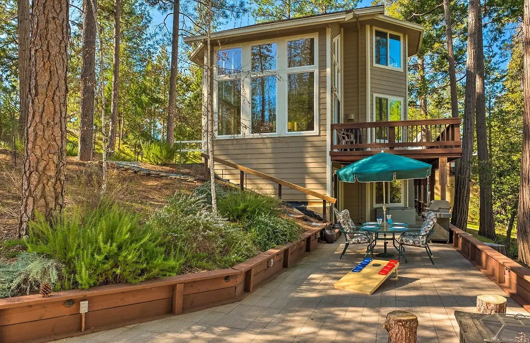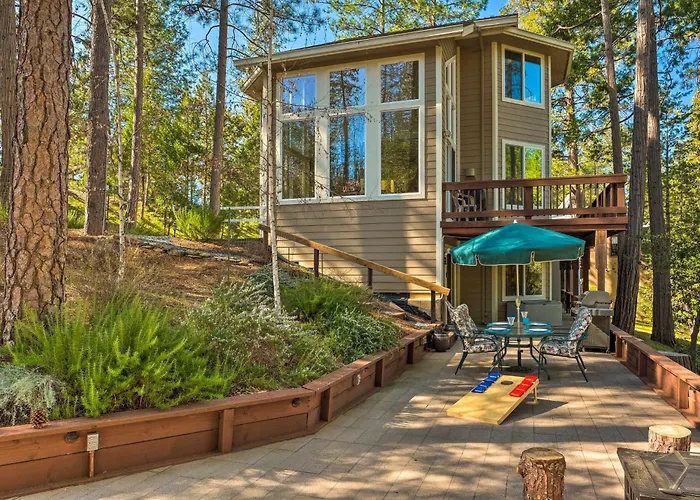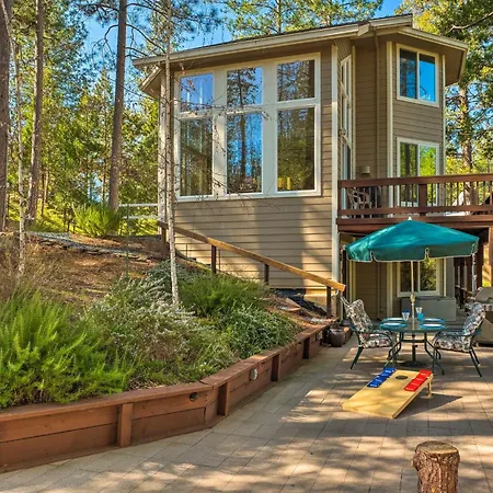 Ervaar ultiem comfort in de keuken van Beautiful Wooded Escape, Half-Mi To Pine Mtn Lake! villa, voorzien van koffie- en theefaciliteiten, een koelkast, keukengerei. De luchthaven Modesto City-County is gesitueerd op 100 km van de villa.